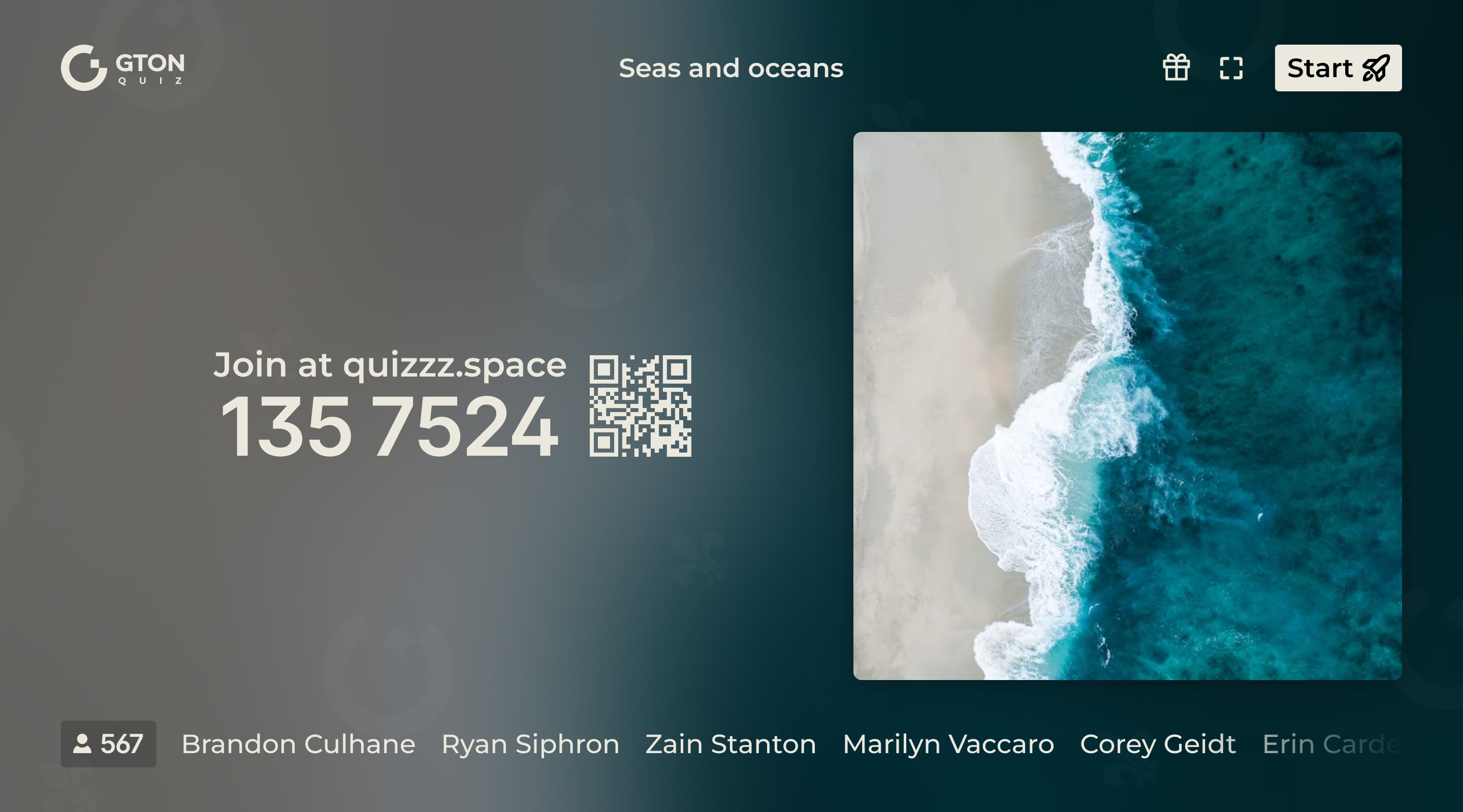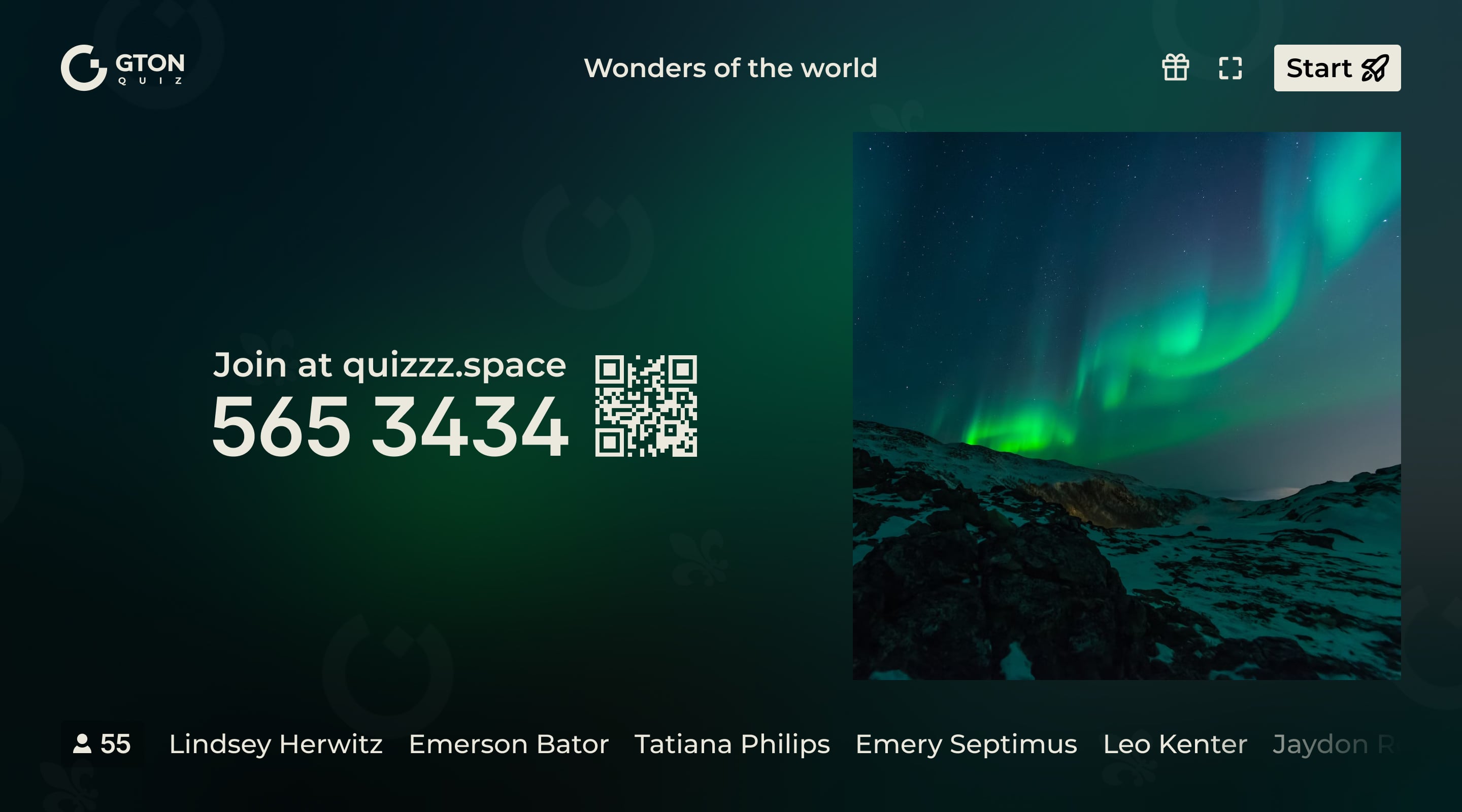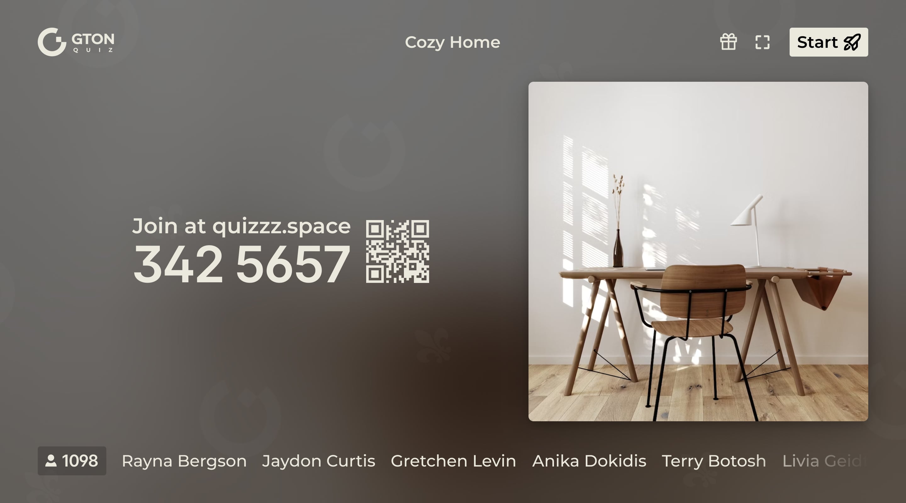 Gton Quiz is a Web3 platform for creating and launching quizzes. These quizzes can be held at offline events and streamed online. Participants join the application via their crypto wallets and answer questions on their own devices. Winners receive cryptocurrency in their accounts.
