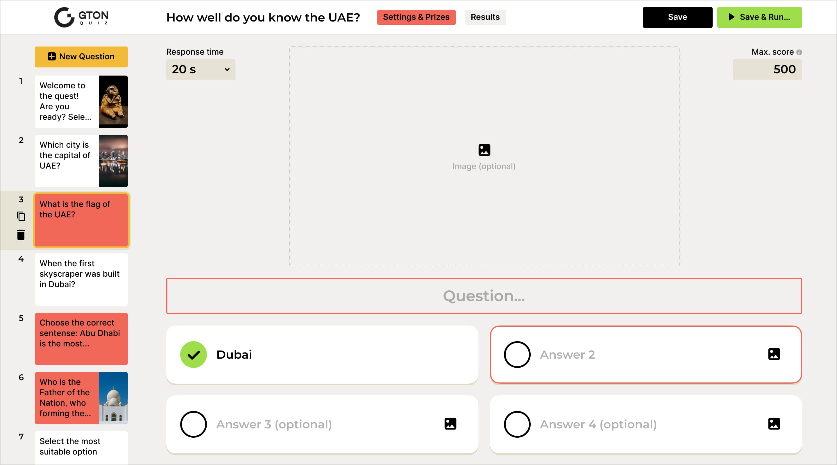The author saves the quiz. The platform checks the game and highlights where the author hasn’t entered a question, forgotten to mark a correct answer, or hasn’t set the prizes.