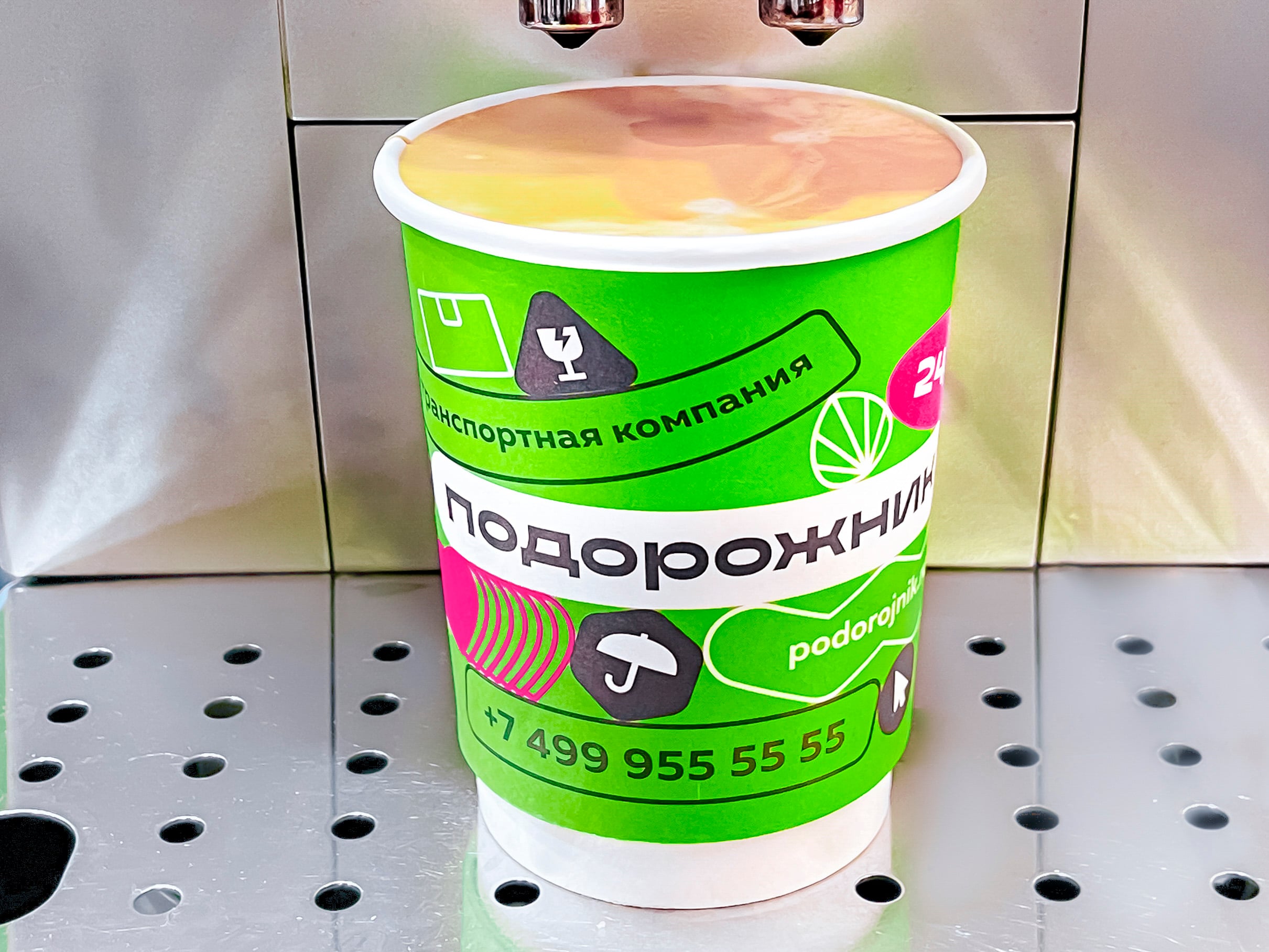 Visitors were treated to coffee in branded cups. Along with business covers and booklets, guests took away pens, pencils, badges and stickers with brand graphics.