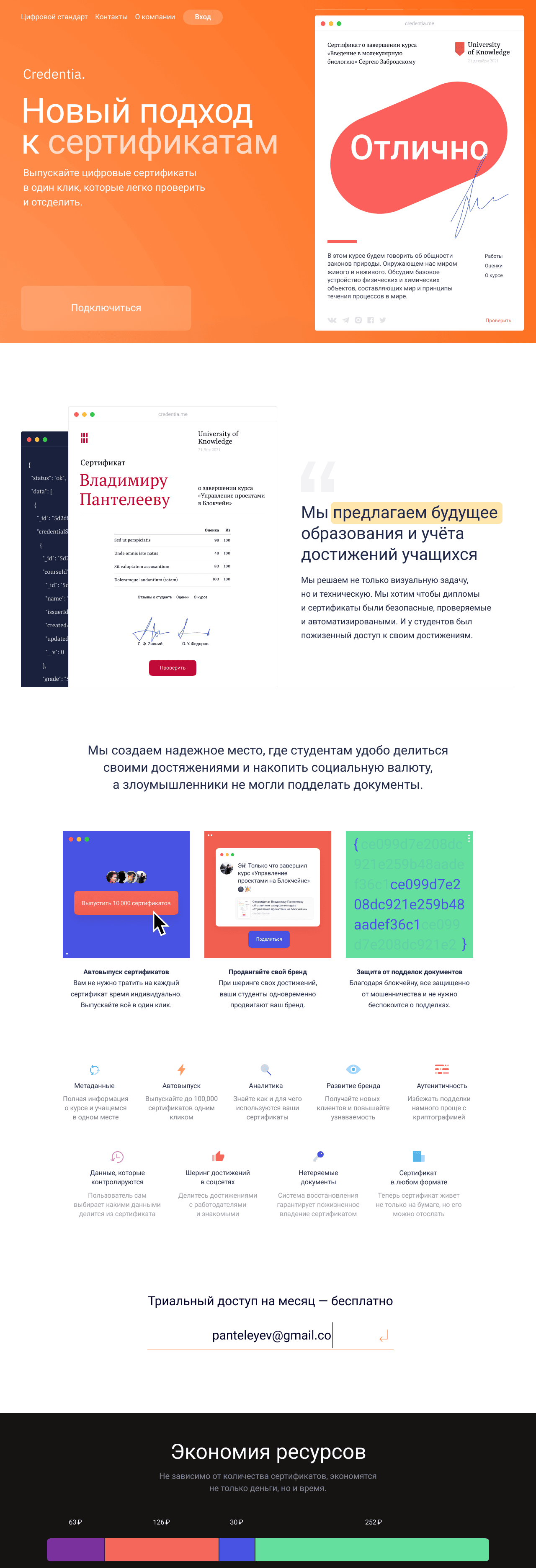 Credentia develops technologies for issuing and sharing digital documents. We designed both the app and the product page.