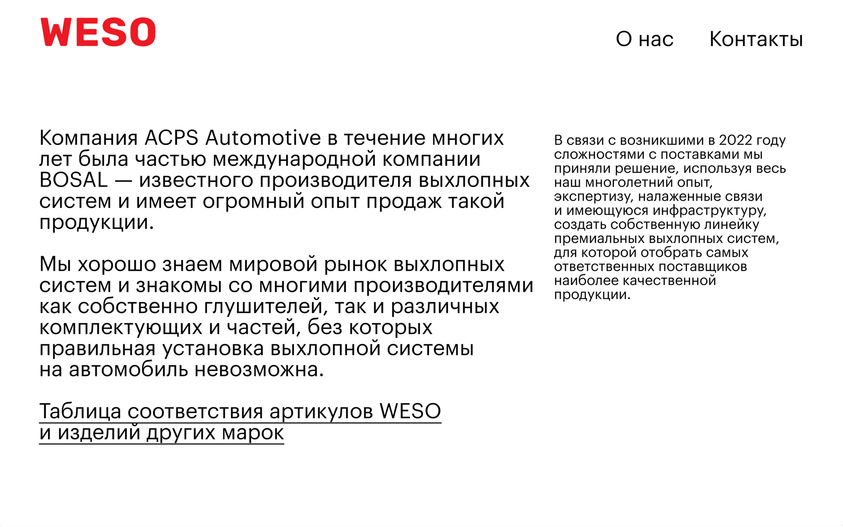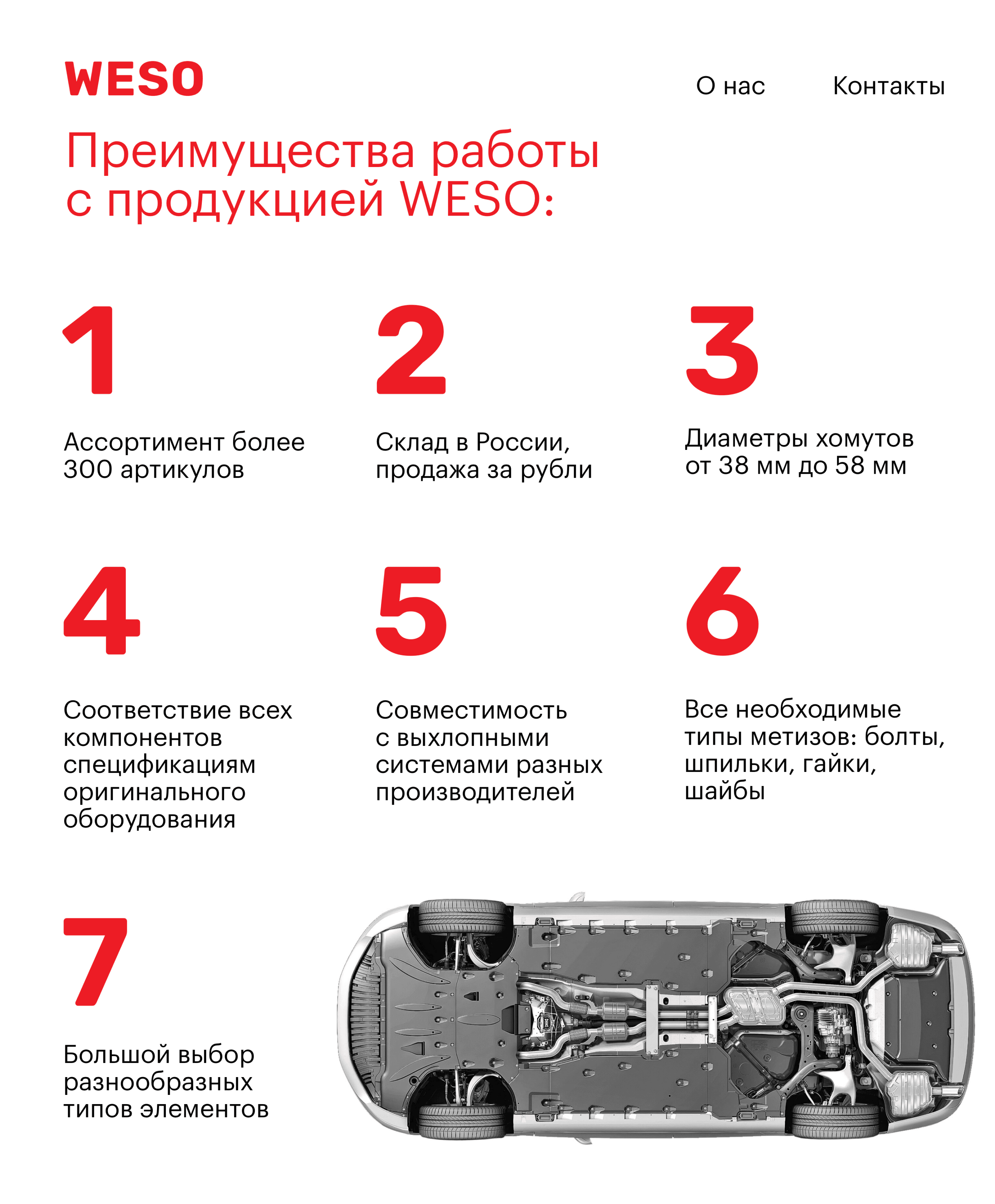 WESO produces analogs of foreign exhaust systems. It is a new brand of the Russian company ACS Automotive, which has been dealing with car parts since 1999.